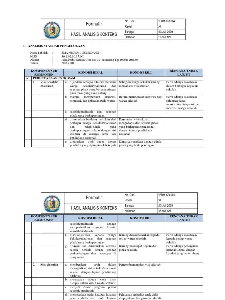 Contoh Lembar Kerja Analisis Data Mutu Standar Pengelolaan / 2 / Standar pengelolaan pendidikan dalam upaya peningkatan mutu.